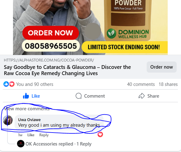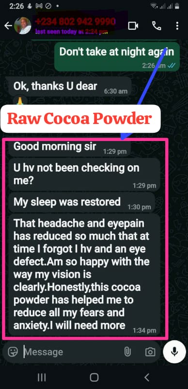 We have been able to help 4973+ Nigerians in the last 6 months by just recommending Raw Cocoa Powder as it does more than just clearing all eye (Glaucoma, Cataract, Blurry Vision etc) problems